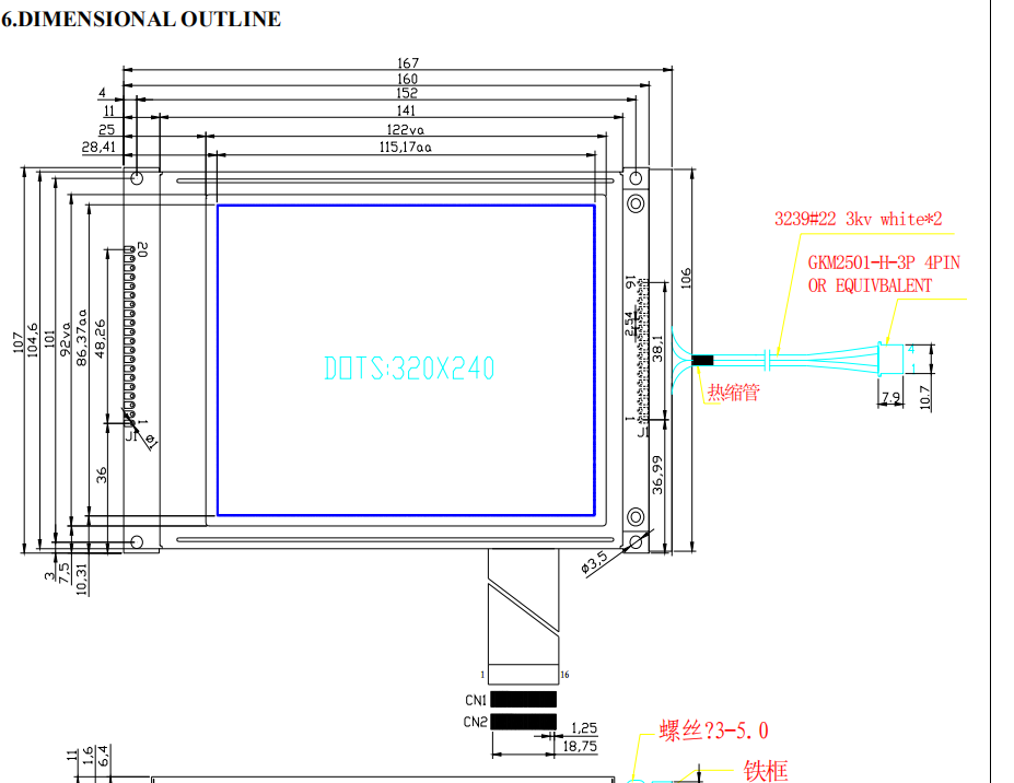 320*240 graphics dot matrix LCD module, 320240 LCM industrial control display screen,Appearance size: 160 (width) * 107